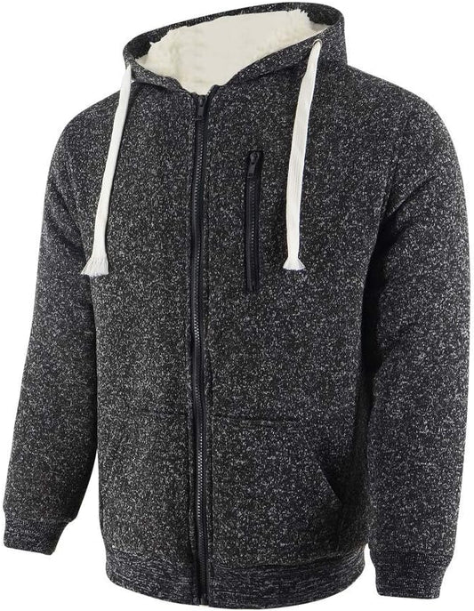 Hooded Sweatshirt, Heavyweight Warm Sport Hoodies, Thick Fleece Liner Full Zip Up Winter Work Sweater Jacket